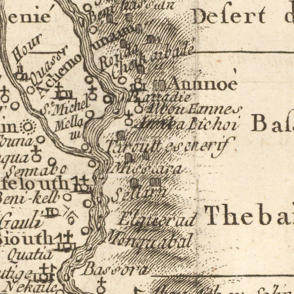 Scarce map of a portion of Egypt, focused on the course of the Nile River.