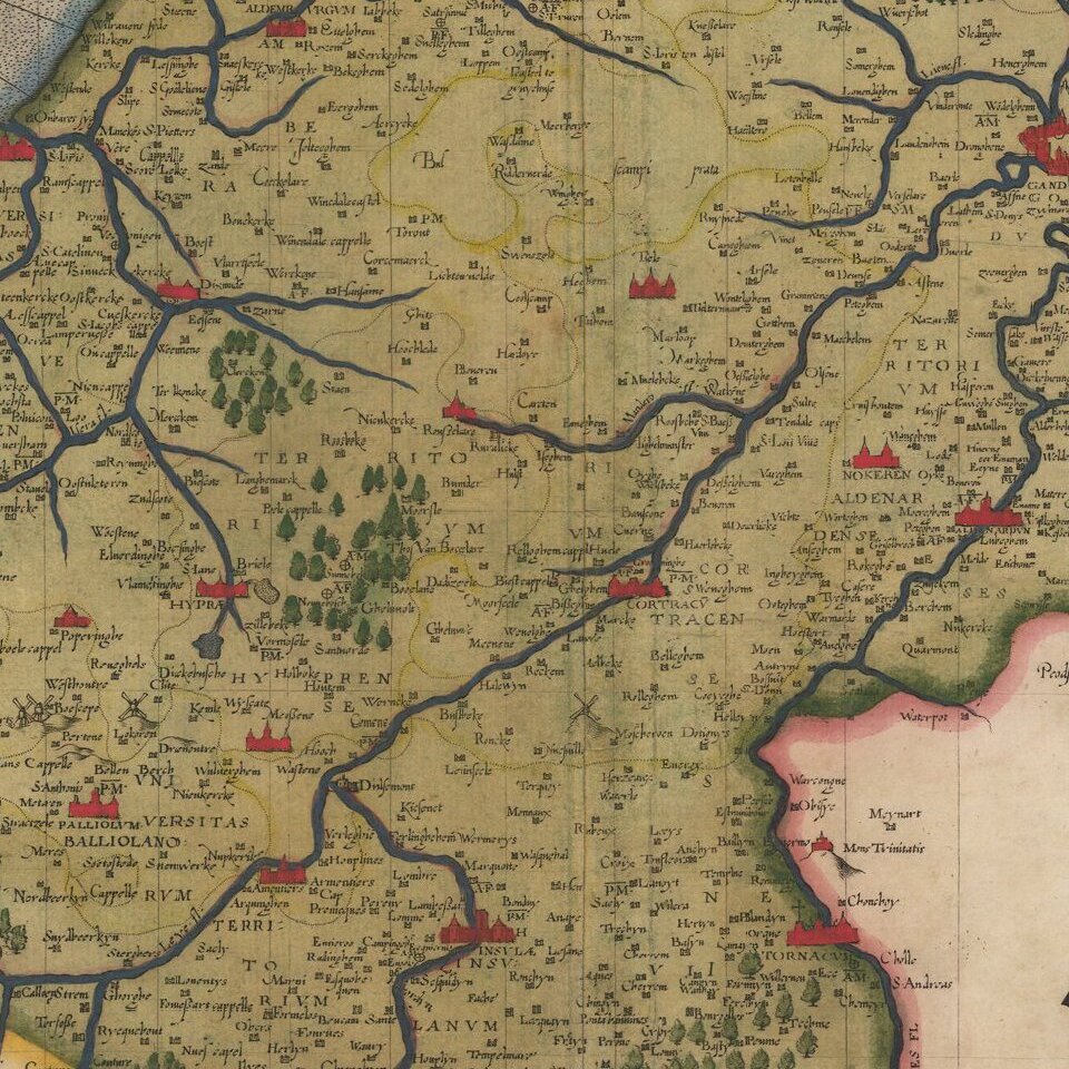 One of the earliest obtainable maps of the Flanders region, first published In Venice in 1559.