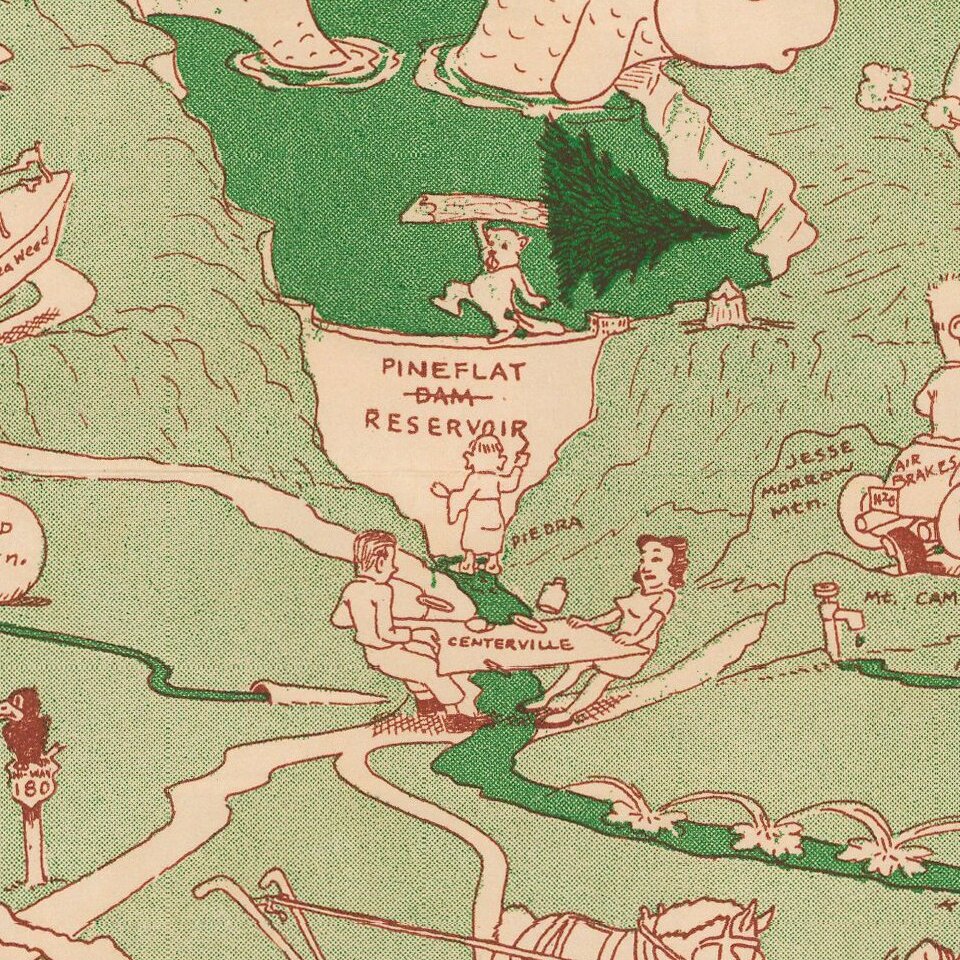 Rare promotional pictorial map of the National Parks and Recreational Opportunities to the east and northeast of Fresno California, published by the Fresno Chamber of Commerce.