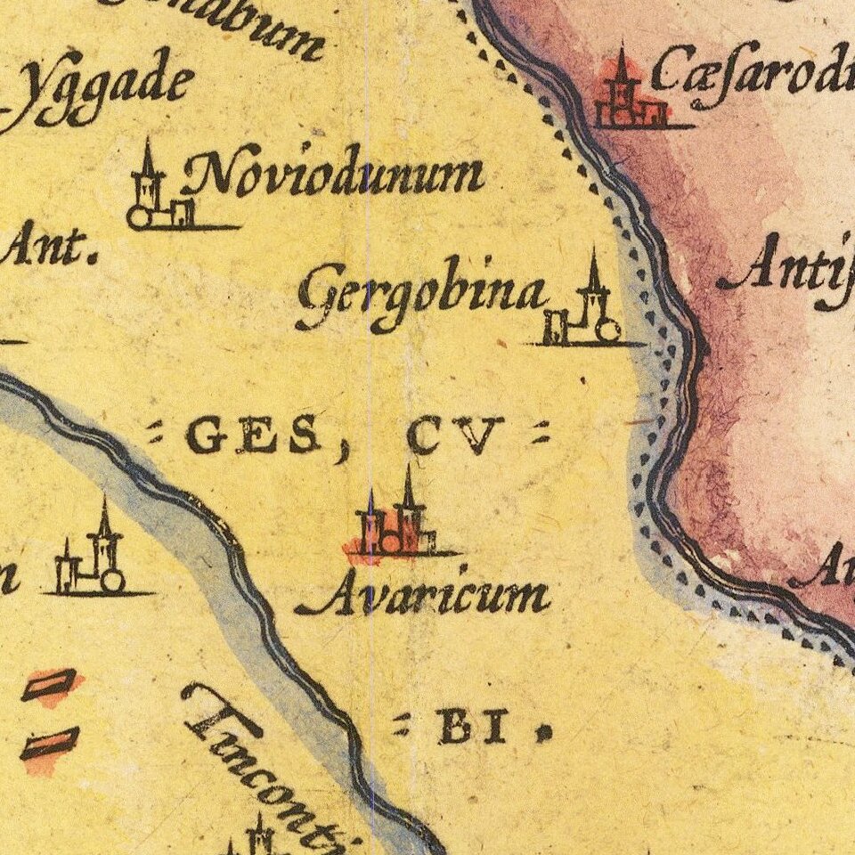 Vivid map of Ancient France from Ortelius' Parergon, the first historical atlas. The map is based upon information from classical sources such as Strabo, Virgil, Ovid and Caesar.