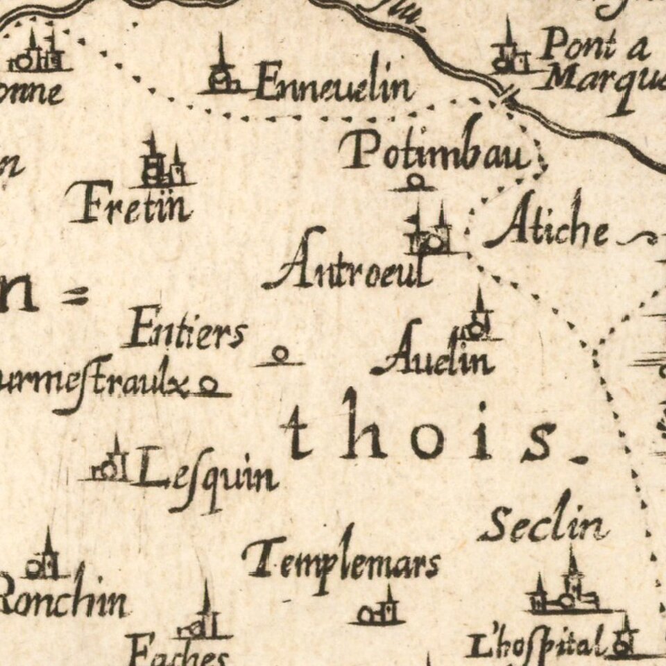 In 1627, Martin Le Bourgeois also published a large (35 x 31 inches) plan of Douai with 12 views of the colleges and 2 views of the city.
