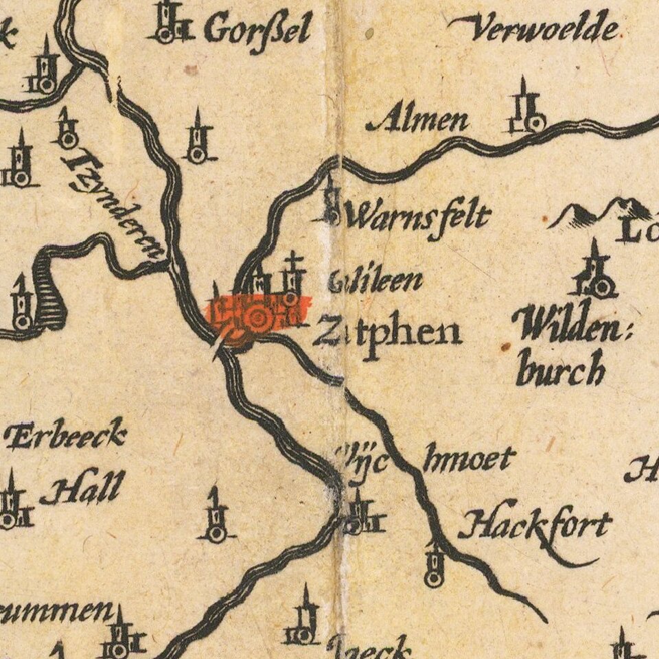 A fine early map of the Gelderland, Overijssel and adjoining regions, which appeared in Petrus Kaerius's (Peter Van der Keere) Germaniae Inferior id est, XVII Provinciarum ejus novae et exactae Tabulae Geographicae, first published in Amsterdam in 1617.