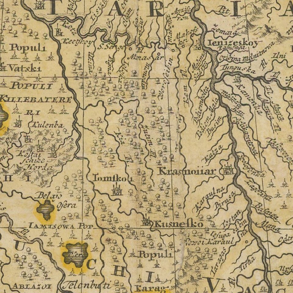 Extends from the Black Sea and th Baltic to Kamchatka, China, Northern India and the mouth of the Indus River. Includes remarkable detail in areas still then not yet explored. The Great Wall of China is shown.