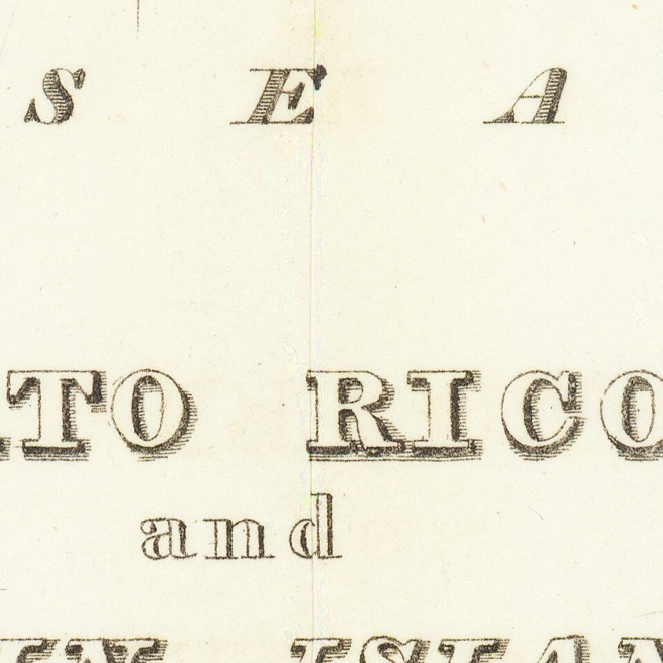 A nice detailed map of Puerto Rico and the Virgin Islands, from the first edition of Carey & Lea's American Atlas. This is one of the most detailed maps of the Virgin Islands to appear in a commercial atlas. The lengthy narrative text below includes details about the islands, climates, towns, soils, government, and history of both Puerto Rico and the Virgin Islands. This map is increasingly rare on the market.