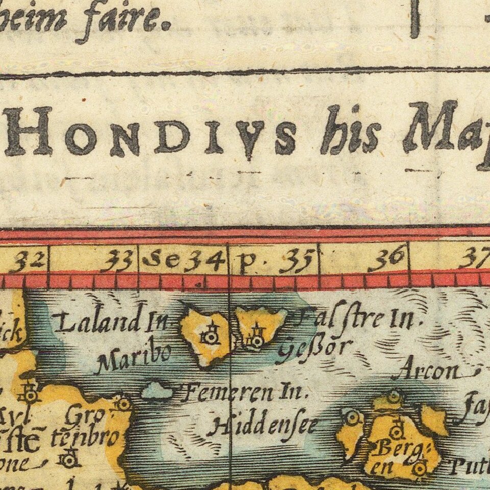 Jodocus Hondius the Elder (1563-1612), or Joost de Hondt, was one of the most prominent geographers and engravers of his time. His work did much to establish Amsterdam as the center of cartographic publishing in the seventeenth century. Born in Wakken but raised in Ghent, the young Jodocus worked as an engraver, instrument maker, and globe maker.