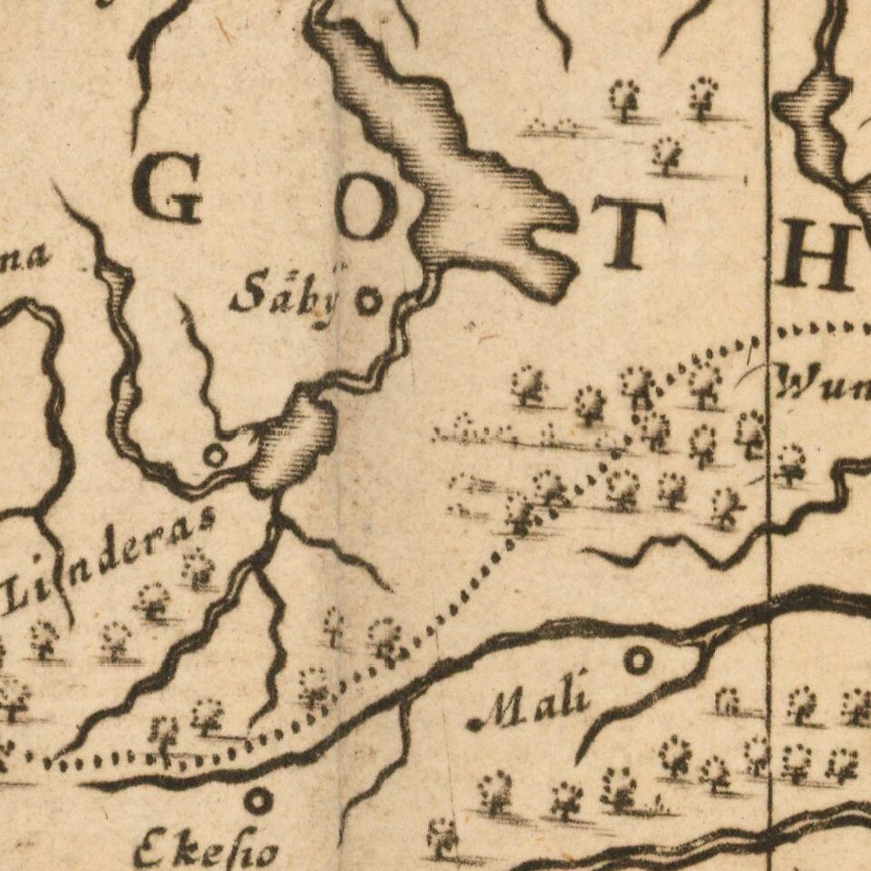 Decorative map of Gothia, published by Valk & Schenk.