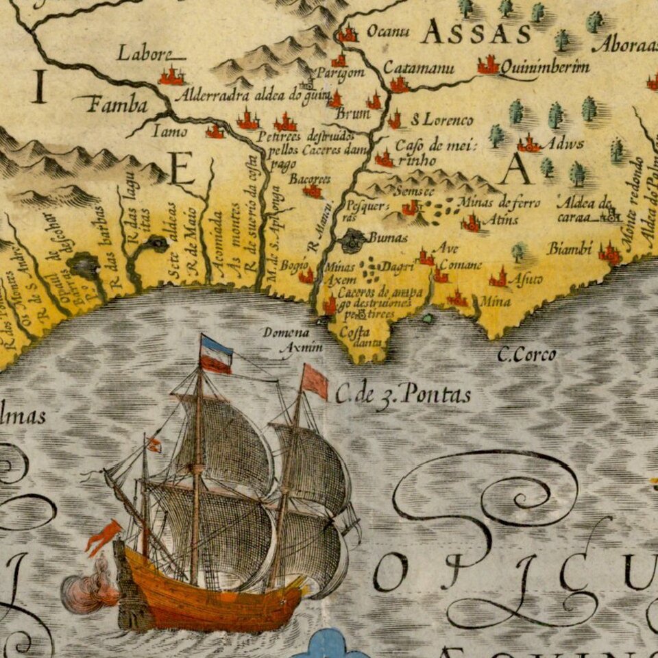 Gorgeous map of the West African Coast from Rio Senego (Senegal) to Cape Lopez, just below the equator, and includes Guinea with parts of Benin and Lybia. Detailed inset of St. Thomas.