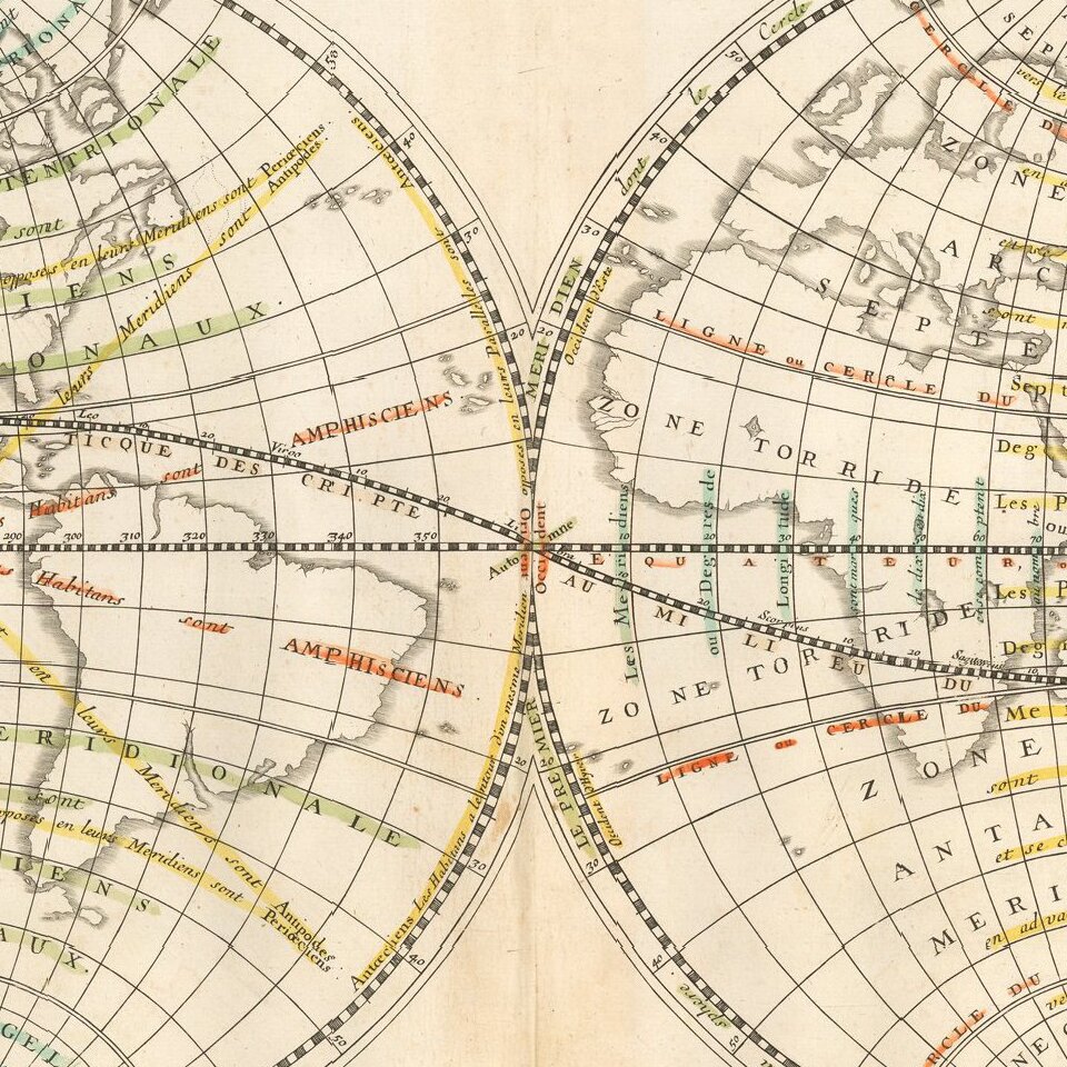 Nicolas Sanson's 1659 double-page engraved map of the world, featuring particular emphasis on latitudes, zones (e.g., "Zone Toride"), and meridians.