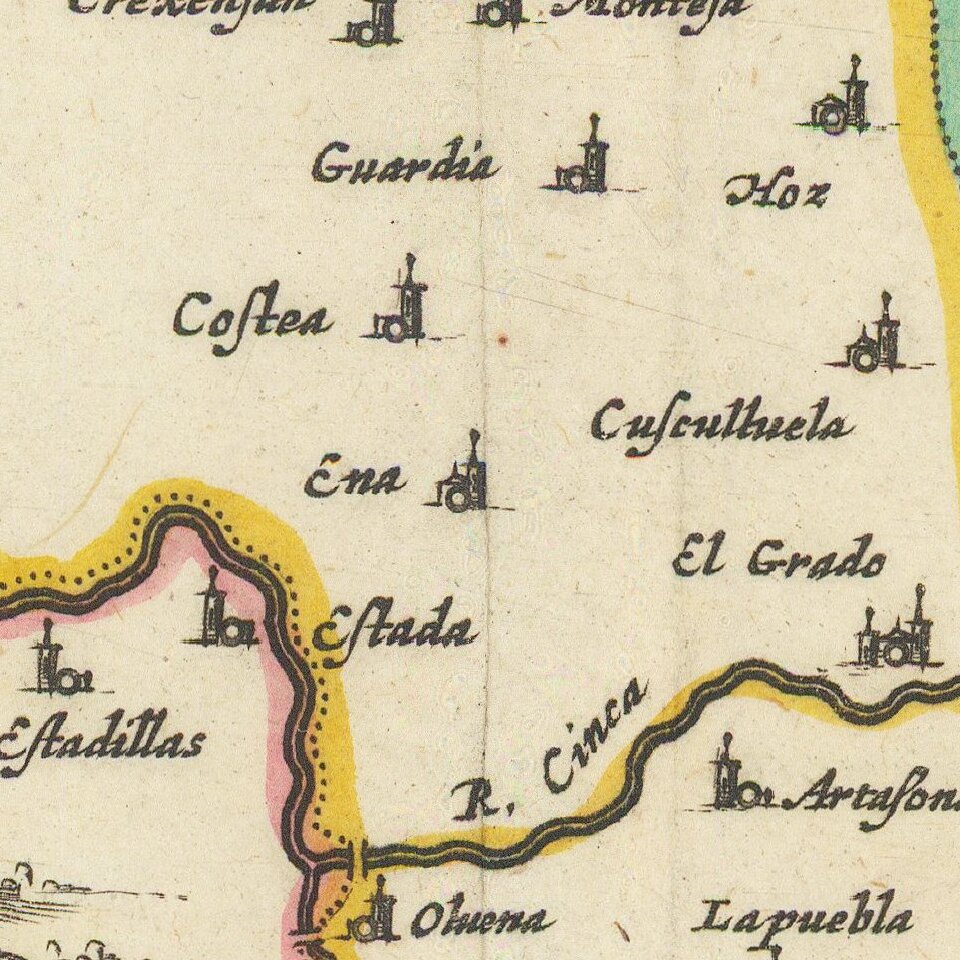 Fine old color, gold heightened example of Blaeu's map of the Spanish Pyrenees Mountains, Huesca etc.