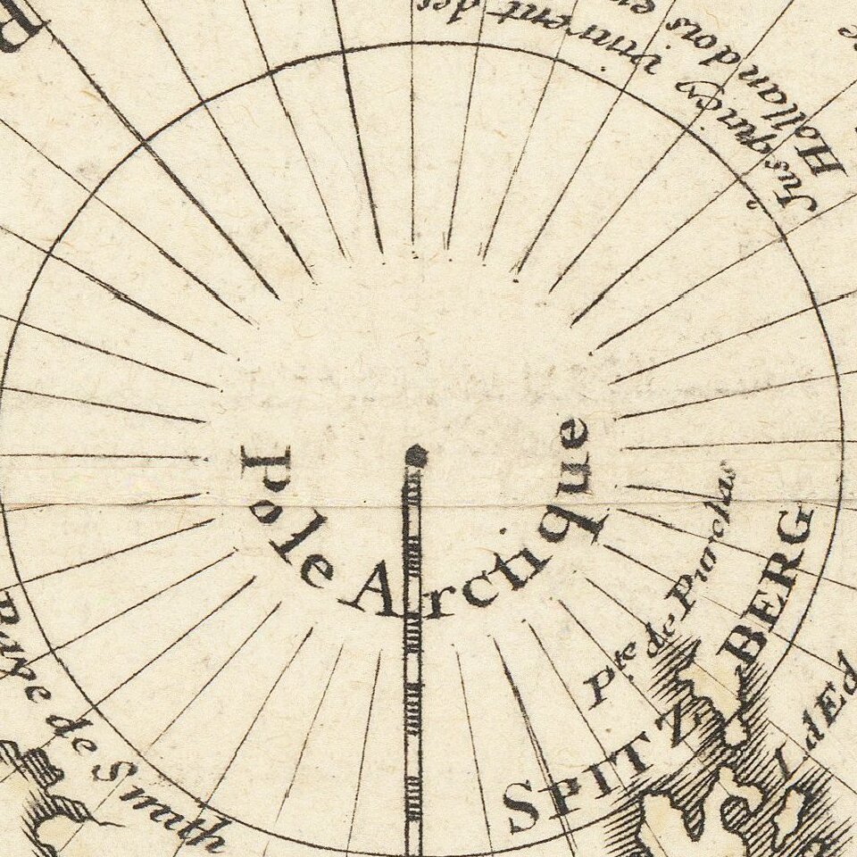 Fine example of the first state of De L’Isle’s polar projection, focused on the Arctic.