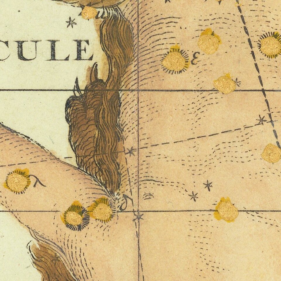 Detailed star chart of the constellations Hercules and neighboring constellations, from Fortin's Atlas Celeste de Flamsteed . . , published in Paris.