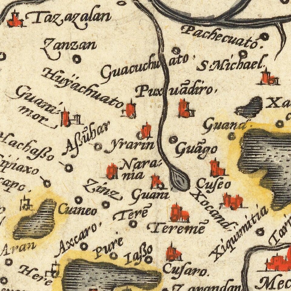 Scholars still disagree over the sources for the map, although one suggests that Ortelius used Jean Duran's map of Mexico from 1575. What is evident is the level of detail Ortelius felt confident in including about Spain's new colony and its indigenous people. In the northeast, near a mountain range, he writes, "This is a deserted region, where people live in the woods, who highly favor rotting meat, somewhat cooked in the sun. They often fight among each other while collecting harvests and fruits." Further west, he had heard of people who practice anthropophagy, "They who live in these mountains are cannibals."