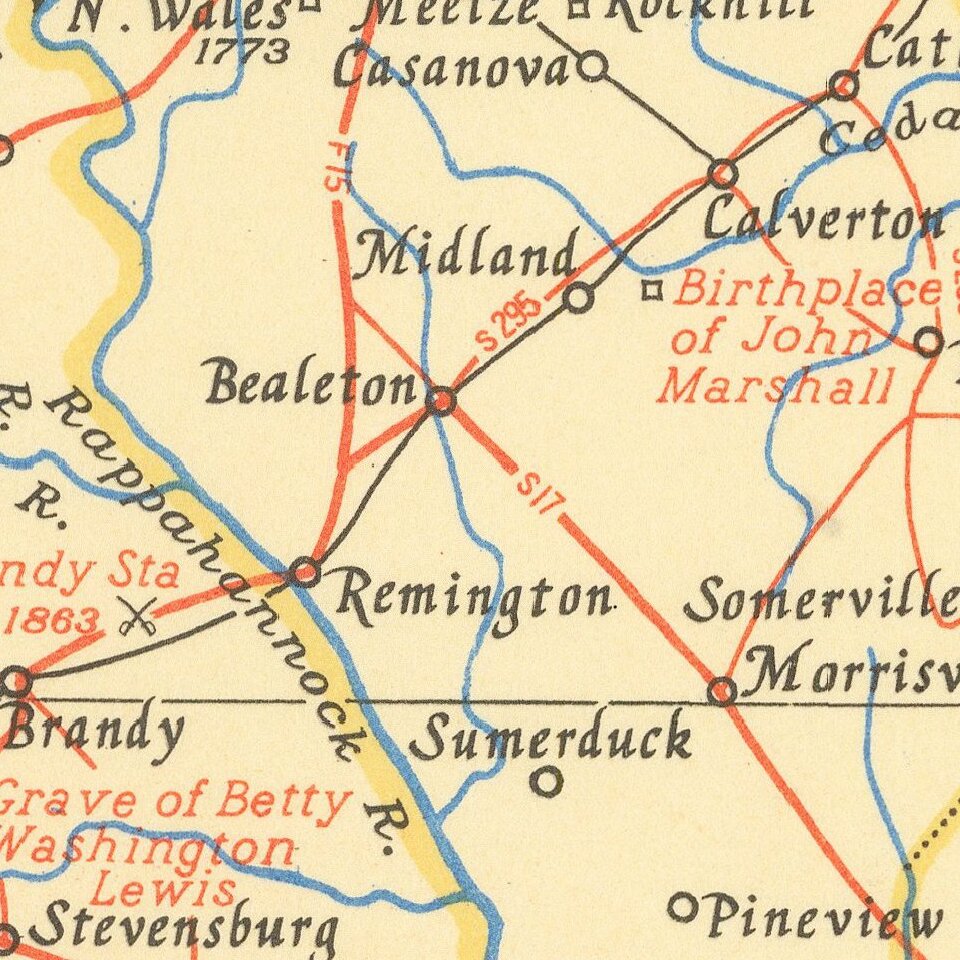 Entertaining map of the the Chesapeake Region, topped with portraits of 8 of the founding fathers and vignettes of important places in American history.