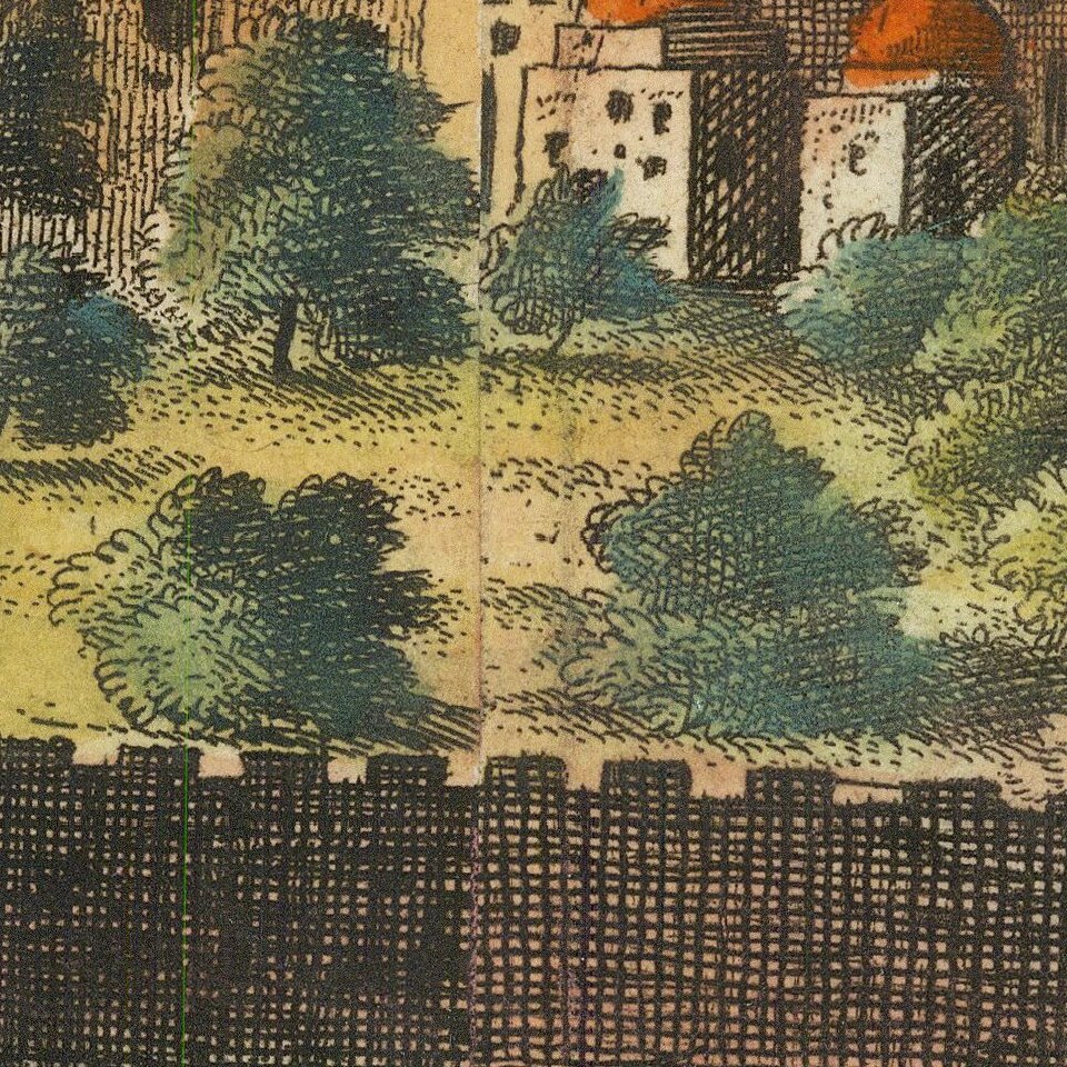 In Jerusalem, De Bruyn avoided detection by pretending to be picnicking with two Franciscan monks who stood guard while he made his preliminary drawing.