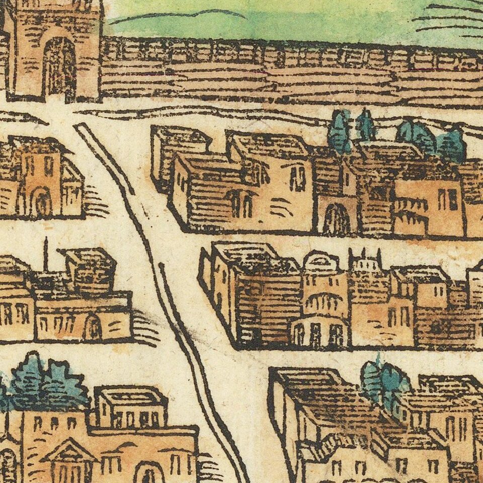Sebastian Münster (1488-1552) was a cosmographer and professor of Hebrew who taught at Tübingen, Heidelberg, and Basel. He settled in the latter in 1529 and died there, of plague, in 1552. Münster made himself the center of a large network of scholars from whom he obtained geographic descriptions, maps, and directions.