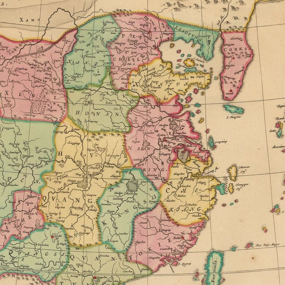 An important general map of China, Korea and Japan, published by Joan Blaeu in the Jesuit Martino Martini's Atlas Sinensis , the first western atlas of China.