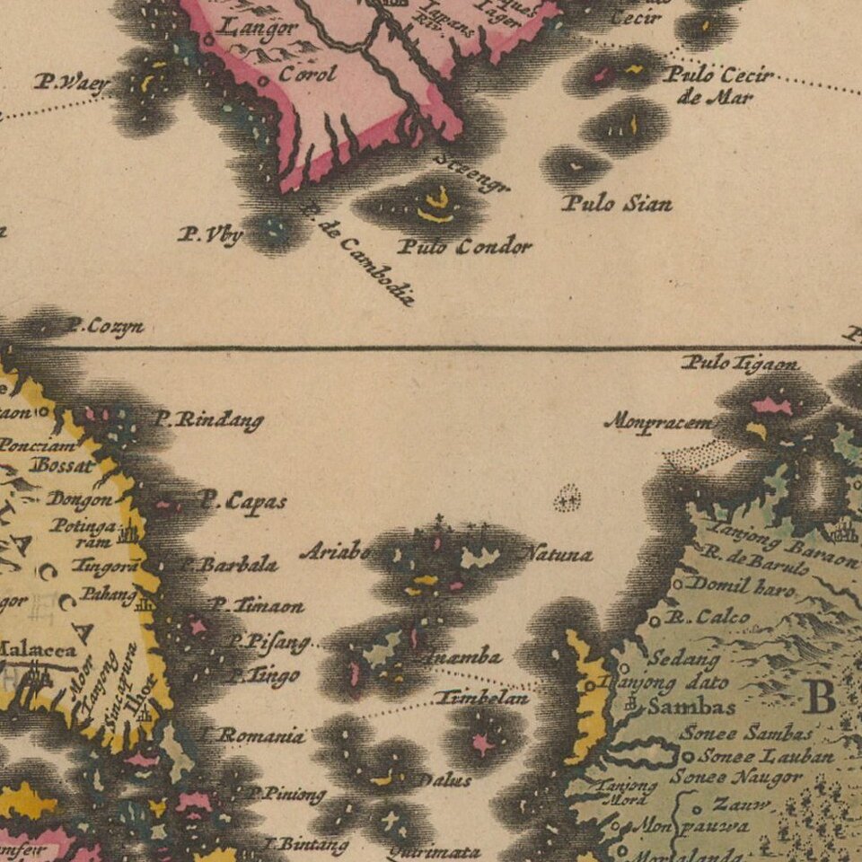 Detailed map of Southeast Asia and the North Coast of Australia, published in Amsterdam by Nicolas Visscher.