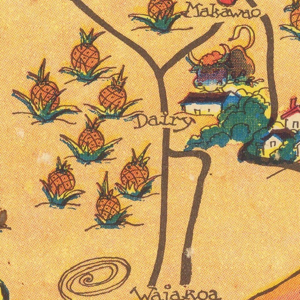 Marvelous whimsical map of Maui by Ruth Taylor White, one of the most famous pictograph artists of the period.