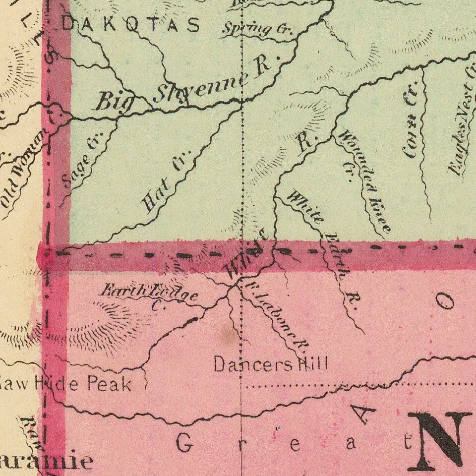 The most notable feature of the map is the massive Idaho Territory, which incorporates all of the future Wyoming and Montana Territories. Formed in March 1863, Idaho Territory remained in this configuration until May of 1864, when Montana Territory was created, making this configuration a rare and short lived occurrence.