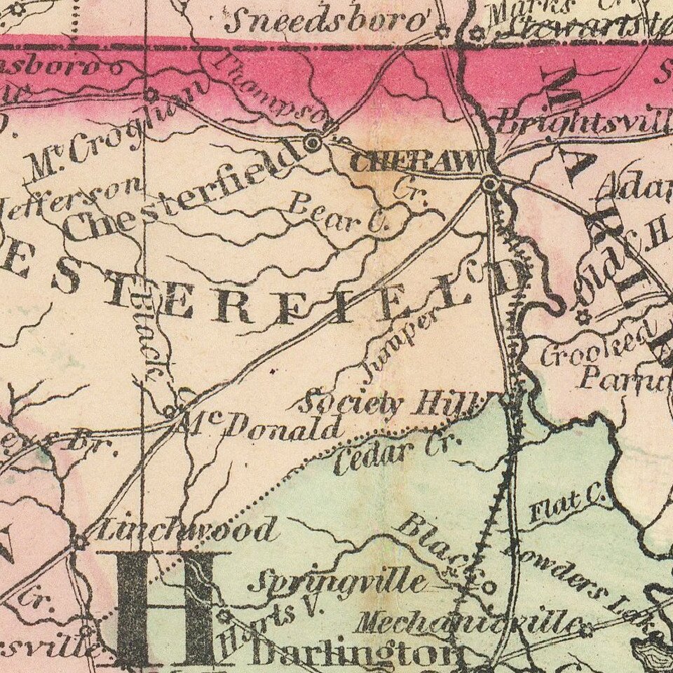 Attractive map of the Carolinas, published by Johnson & Browning.