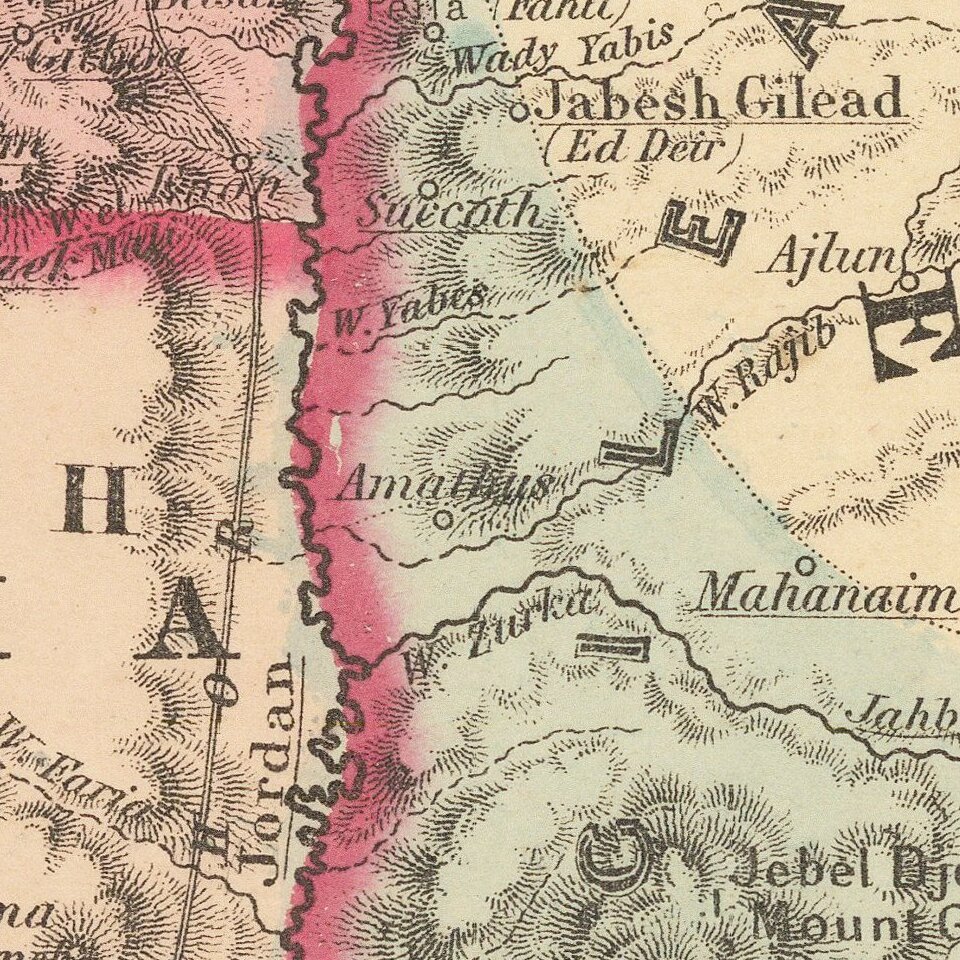 Attractive map of the Holyland, based upon the 12 tribes and contemporary (to mid-19th Century) borders.
