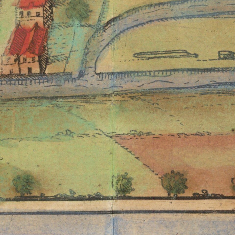 Georg Braun (1541-1622) was born and died in Cologne. His primary vocation was as Catholic cleric; he spent thirty-seven years as canon and dean at the church St. Maria ad Gradus, in Cologne. Braun was the chief editor of the Civitates orbis terrarum, the greatest book of town views ever published. His job entailed hiring artists, acquiring source material for the maps and views, and writing the text. In this role, he was assisted by Abraham Ortelius. Braun lived into his 80s, and he was the only member of the original team to witness the publication of the sixth volume in 1617.