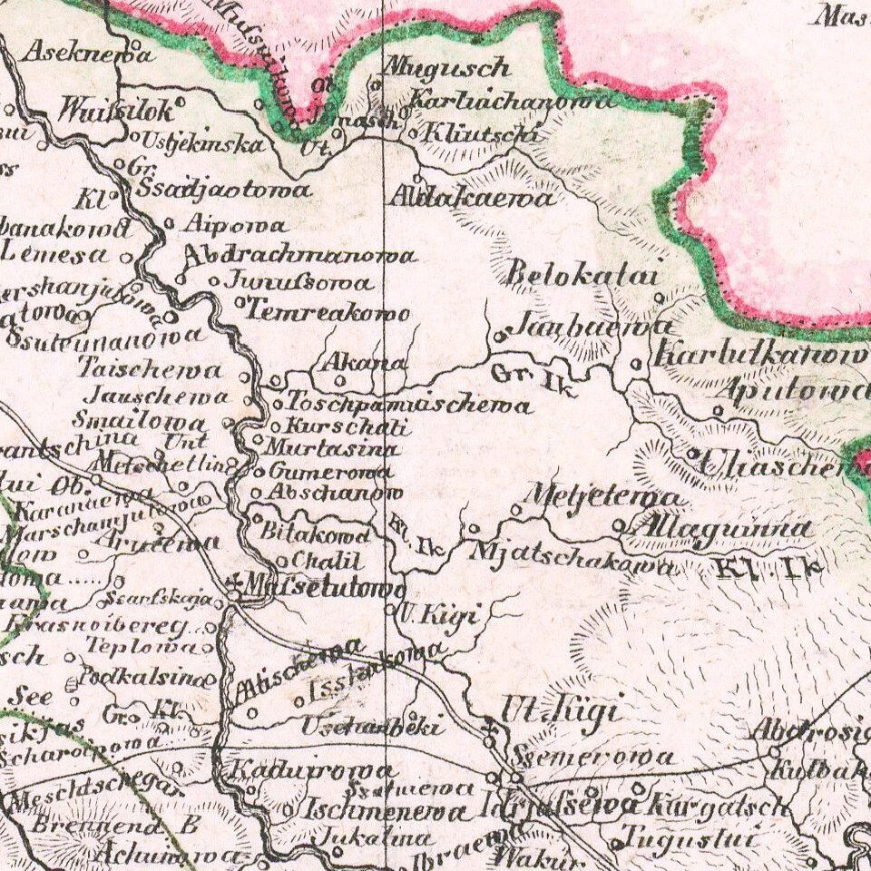 Rare and highly detailed map of the Ural region, with a large inset of the Bjelaja Gora area.