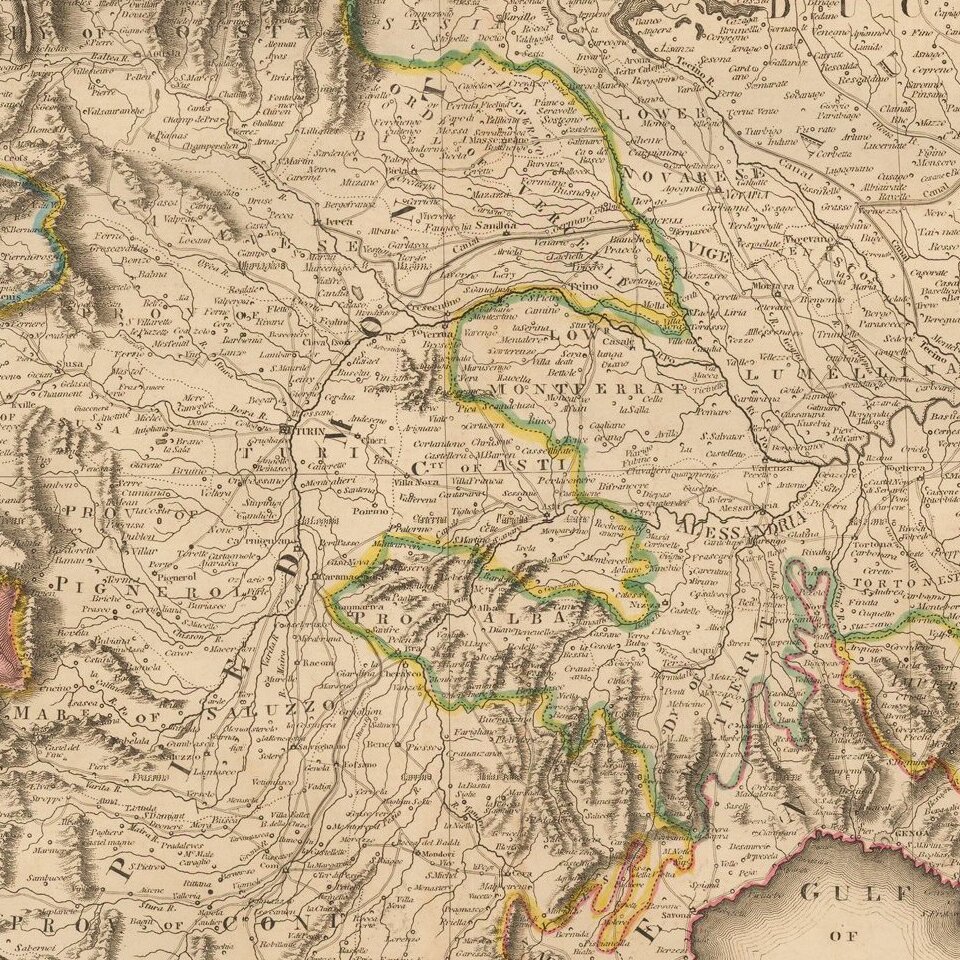 Scarce regional map of Italy, centered on the Gulf of Genoa, Alessandria and the Duchy of Milan.