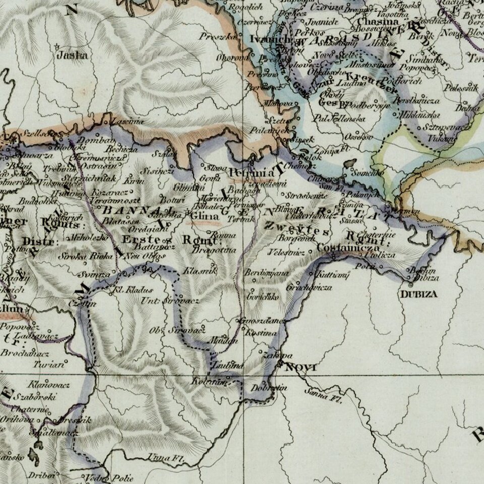 Rare regional map of the Kingdom of Croatia and neighboring regions, published in Vienna at the begnning of the 19th Century.