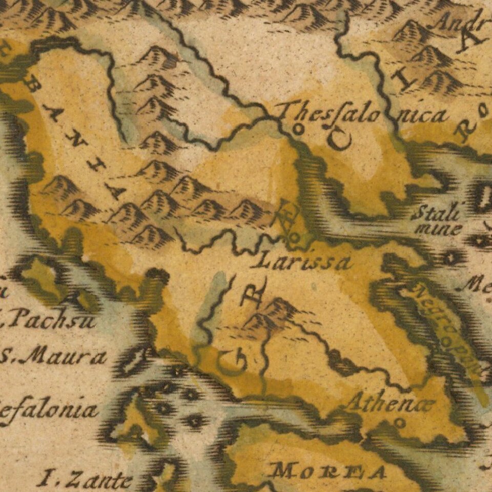 Interesting map of the Mediterranean region, showing Leendert Rouwolf's route from France to Tripoli.