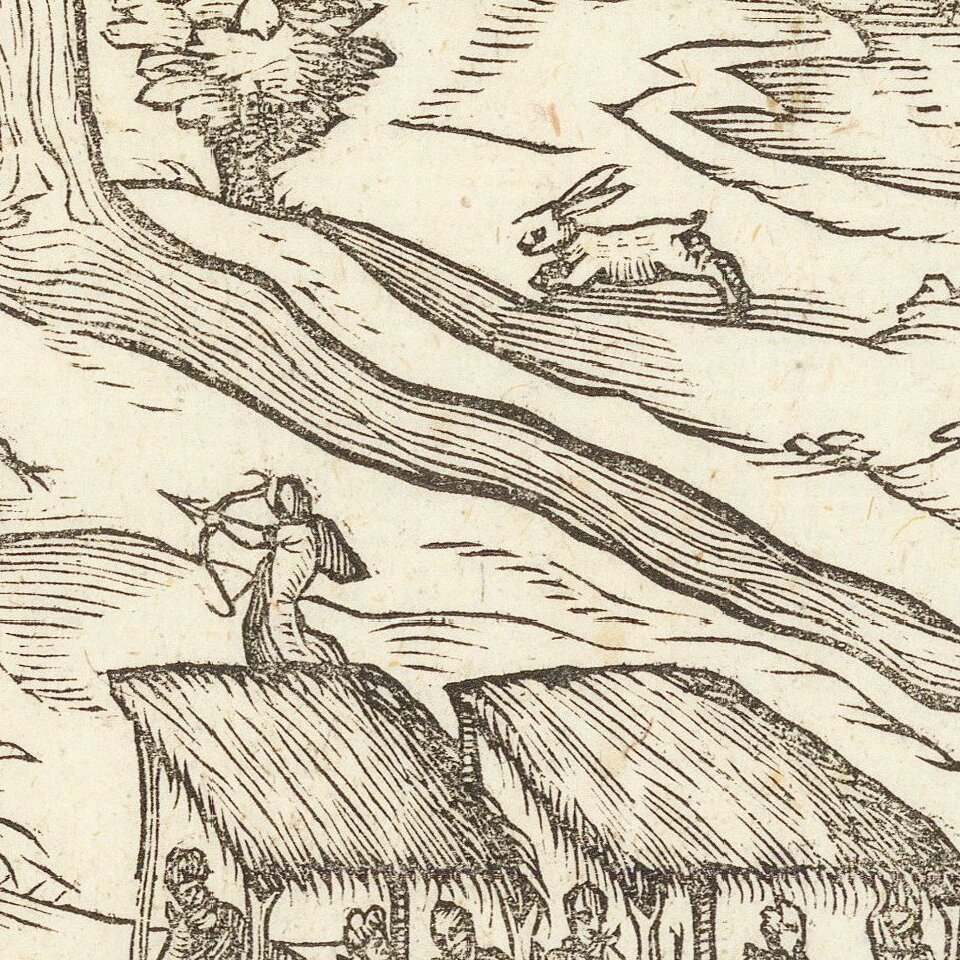 The map also provides a rich tapestry of images depicting the indigenous Indians, showing scenes from their daily lives, along with a look at the cod fisheries in the northeastern portion of the map, perhaps the first European industry in the New World. Other Europeans can be seen throughout the North American coastline.