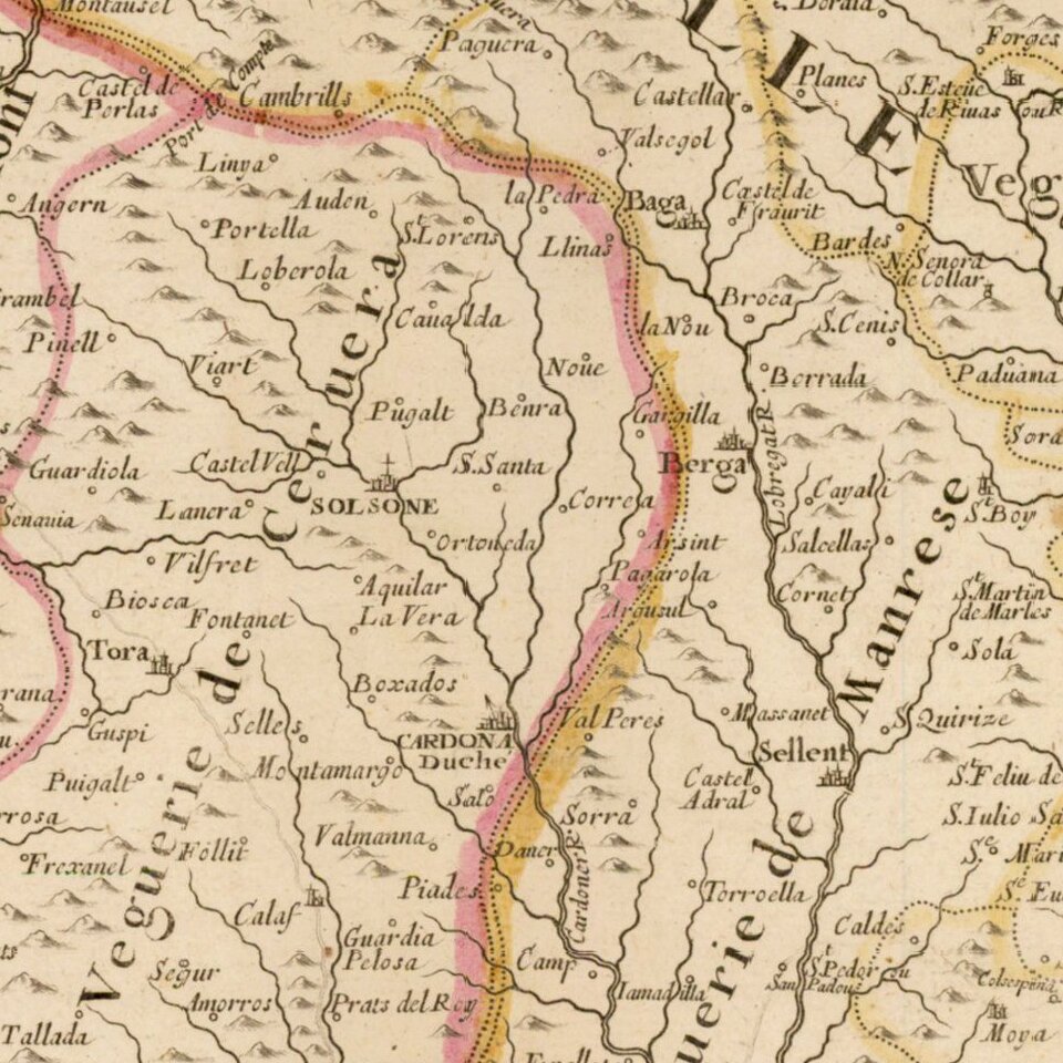Detailed 17th Century map of Catalonia and Roussillon, by Jean-Baptiste Nolin, based upon an early map by Cantelli, which was thereafter revised by Tillemont.