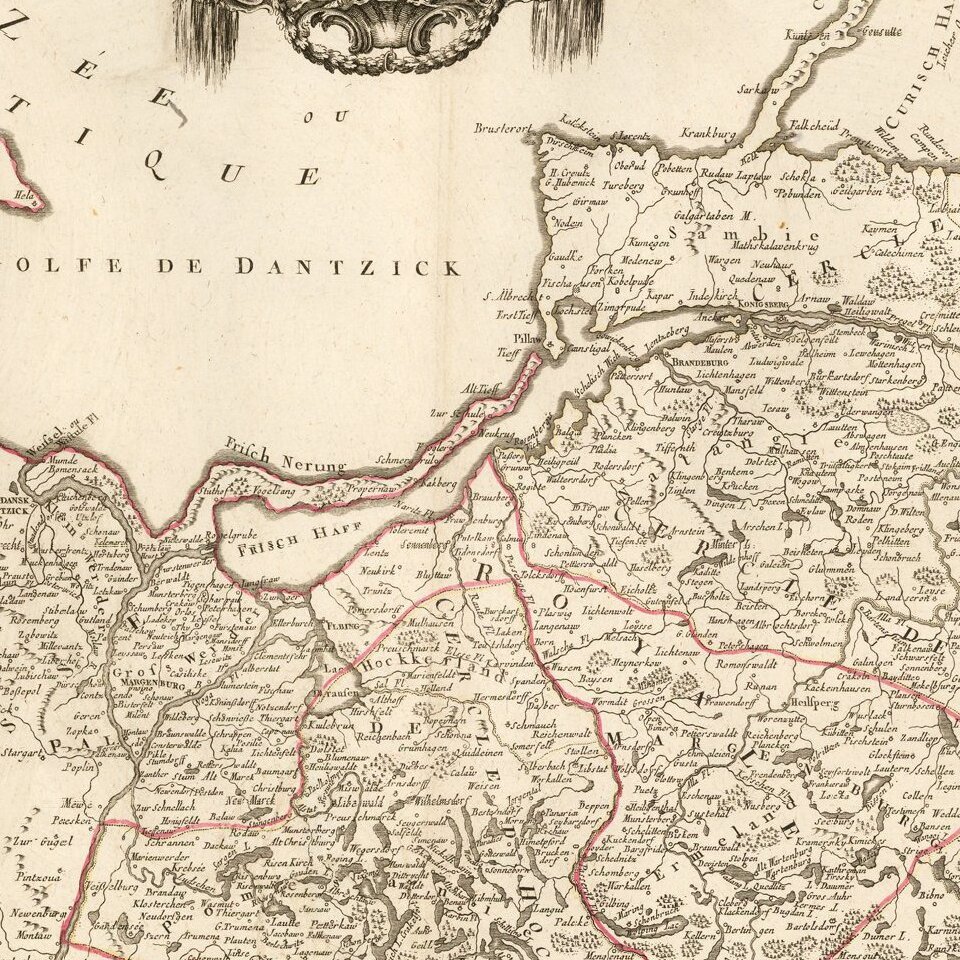 Fine and highly detailed map of parts of Poland, Kaliningrad, Lithuania, etc.
