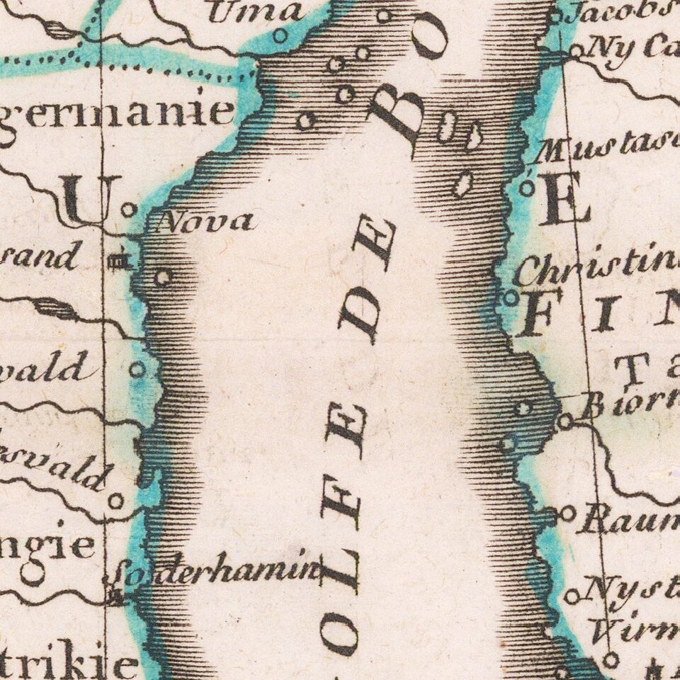 Decorative map of Scandinavia, with a cartouche in the upper left corner.