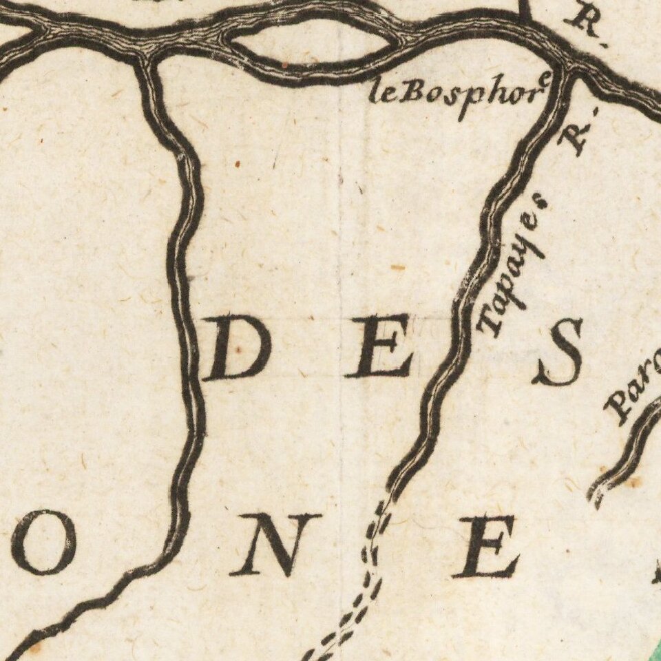 Nicholas de Fer (1646-1720) was the son of a map seller, Antoine de Fer, and grew to be one of the most well-known mapmakers in France in the seventeenth century. He was apprenticed at twelve years old to Louis Spirinx, an engraver. When his father died in 1673, Nicholas helped his mother run the business until 1687, when he became the sole proprietor.