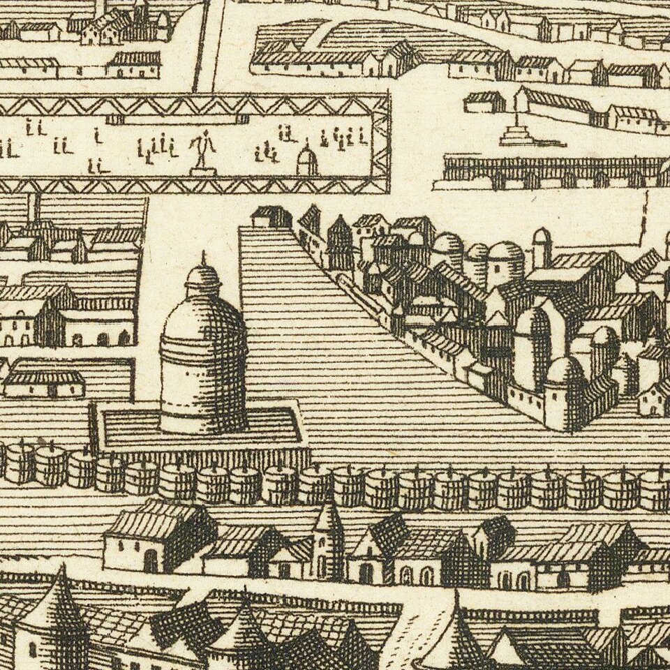 Engraved view of Mexico City, from an unidentified edition of Thomas Gage's voyages in New Spain, probably published circa 1720.
