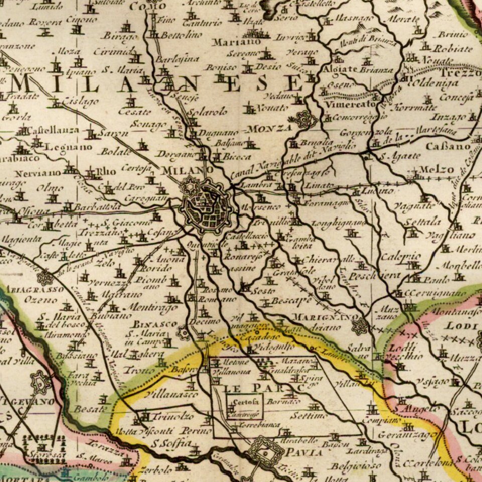 Highly detailed map of the Duchy of Milan, published by Pierre Mortier.