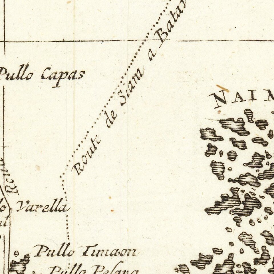 Finely colored example of Chatelain's map of Southeast Asia. The map extends from Thailand, Cambodia, Vietnam, the Malay Peninsula and Gulf of Bengal in the north to Java and Sumatra in the south, and is centered on Malacca and Borneo.