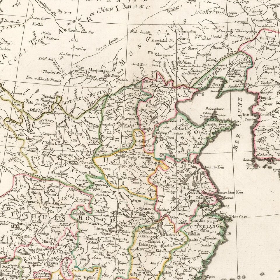 Fine large format map of China, based in part on information derived from Bonne's Atlas of China.