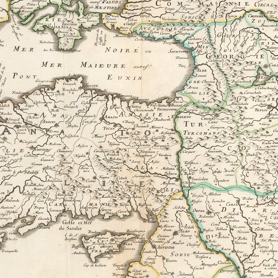 Nicolas Sanson's circa 1650 double-page engraved map of the Ottoman Empire.