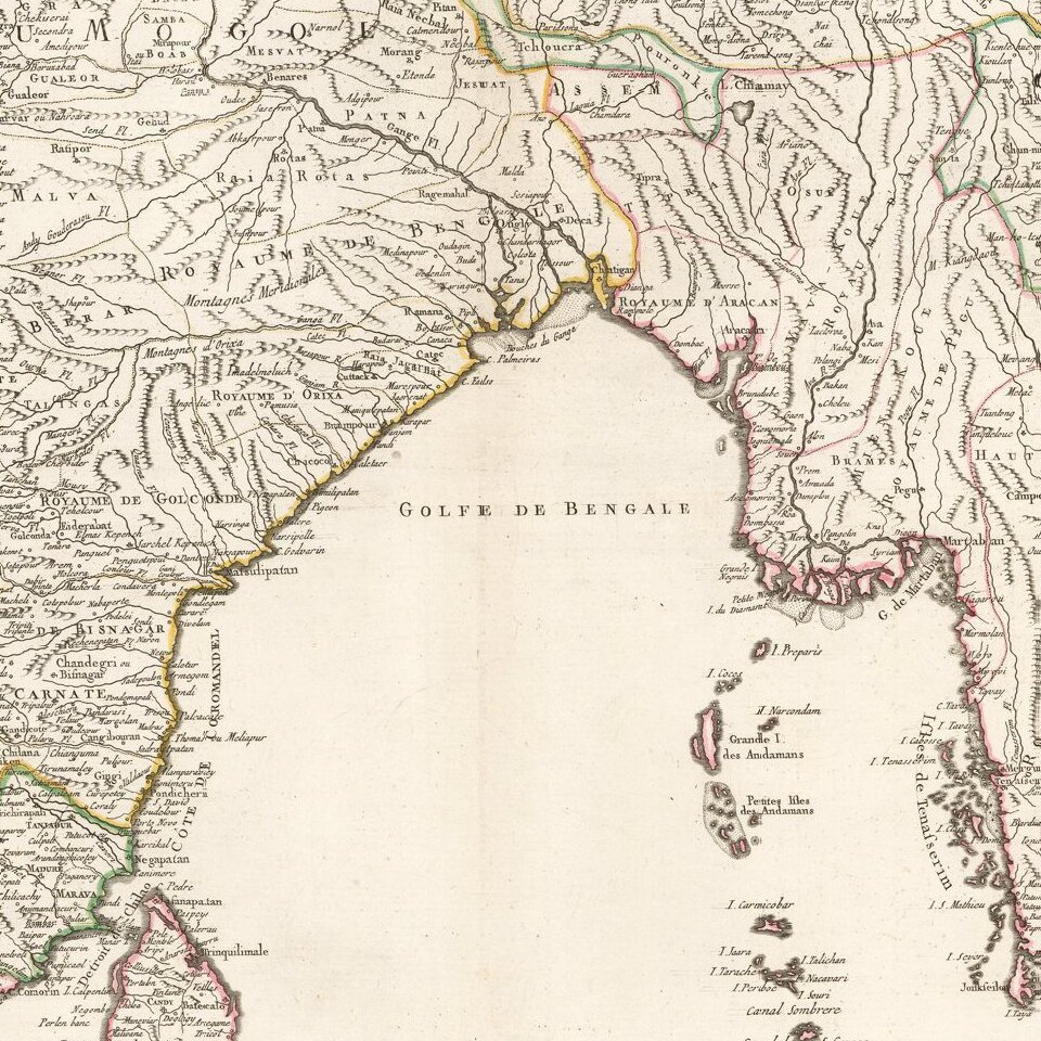 The map extends from the Kingdom of Tibet and northern India to the Maldives and the Straits of Malacca.