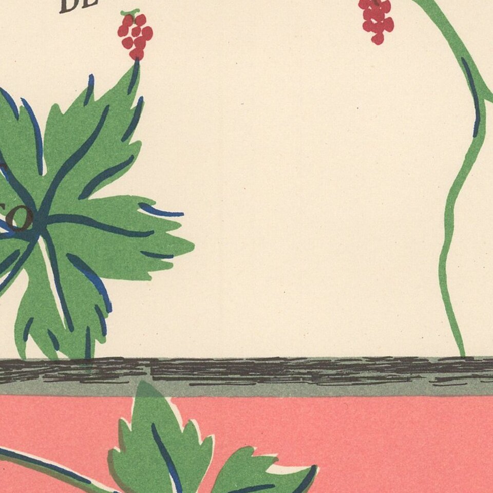 The map is one of a series of 11 maps titled Les Vignobles de France; the others in the series are of Région Est, Région Normandie, Champagne, Roussillon, Val de Loire, Alsace, Côte du Rhône, Bourgogne, Côte de Provence and one of the French colony Algeria [Algérie]. These posters were commissioned by the Comité National de Propagande en Faveur du Vin, a government agency that promoted the French wine industry. The posters advertised French wines as well as tourism to these areas.