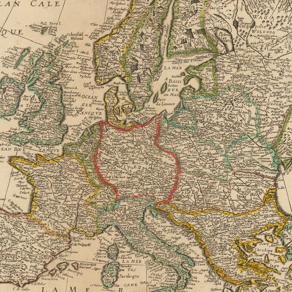 Rare map of Europe, one of the earliest maps to bear the imprint of Alexis Hubert Jaillot.