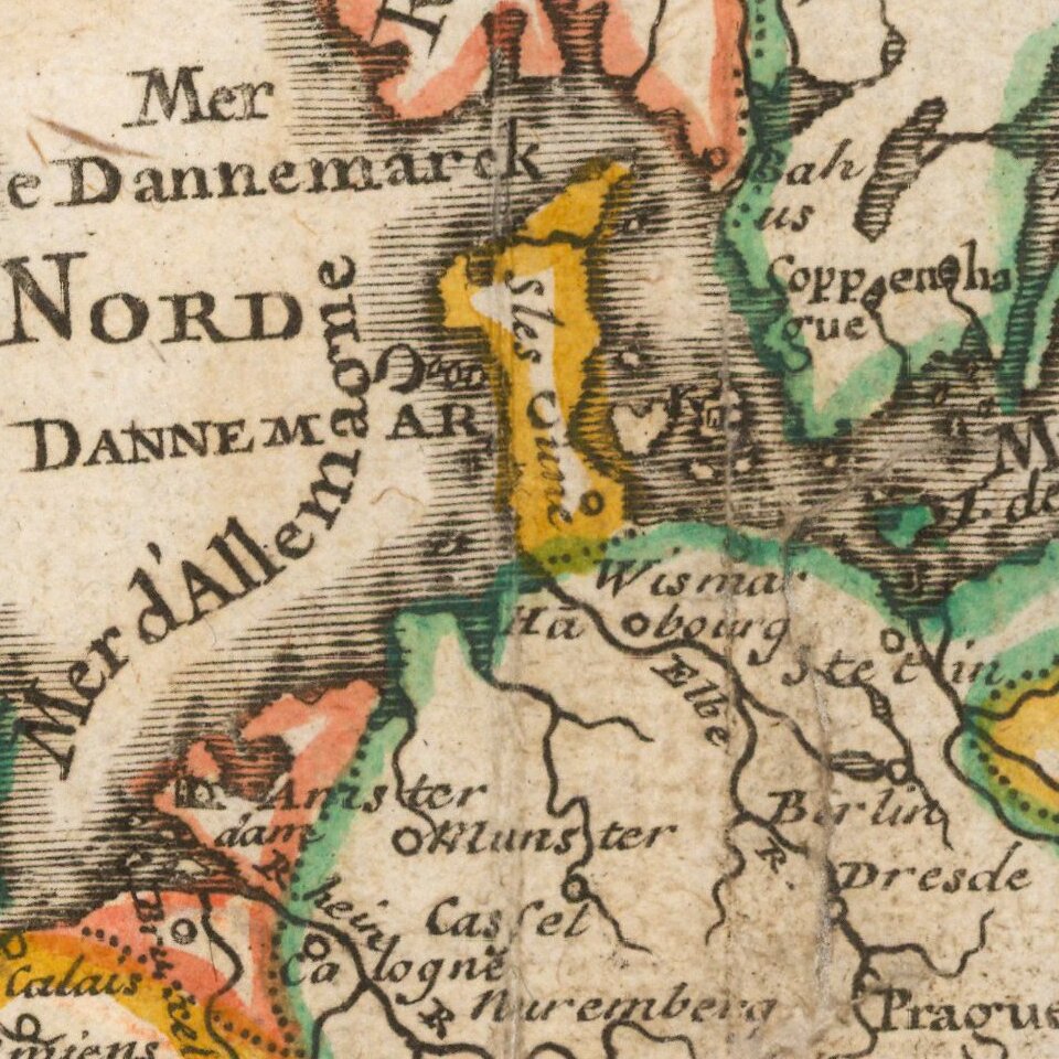 Nicholas de Fer (1646-1720) was the son of a map seller, Antoine de Fer, and grew to be one of the most well-known mapmakers in France in the seventeenth century. He was apprenticed at twelve years old to Louis Spirinx, an engraver. When his father died in 1673, Nicholas helped his mother run the business until 1687, when he became the sole proprietor.