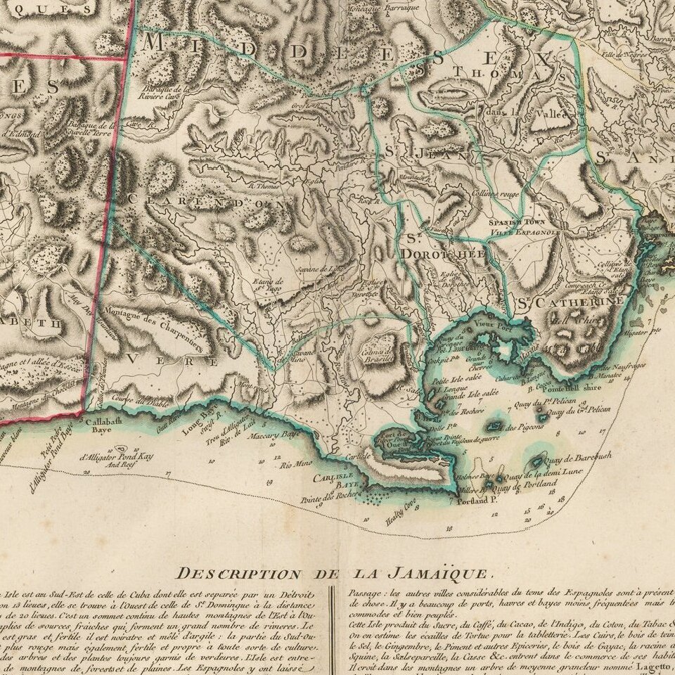 Rare French Map of Jamaica, published by Jean Lattre in Paris.