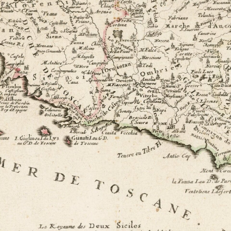 Rare variant edition of Nolin's map of Italy, with a large inset of Sicily.