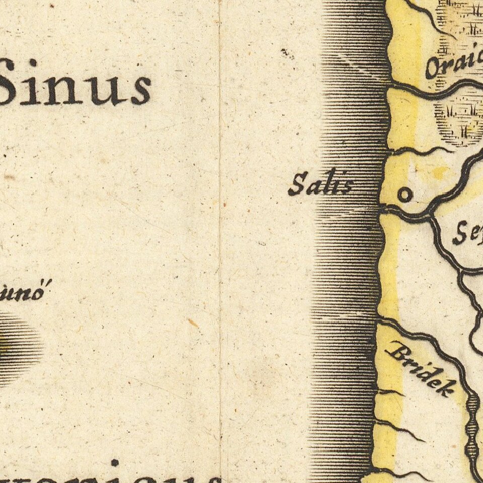 Willem died in 1638. He had two sons, Cornelis (1610-1648) and Joan (1596-1673). Joan trained as a lawyer, but joined his father’s business rather than practice. After his father’s death, the brothers took over their father’s shop and Joan took on his work as hydrographer to the Dutch East India Company. Later in life, Joan would modify and greatly expand his father’s Atlas novus, eventually releasing his masterpiece, the Atlas maior, between 1662 and 1672.