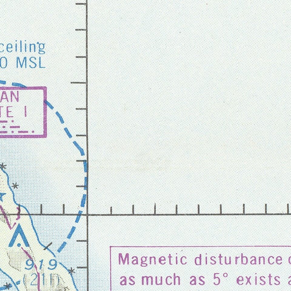 The map shows various flight restrictions, defense areas, and airport configurations, as well as much terrestrial data.