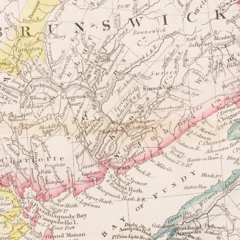 Scarce later state of this interesting large scale map of Eastern Canada and New England, published by John Arrowsmith in London.