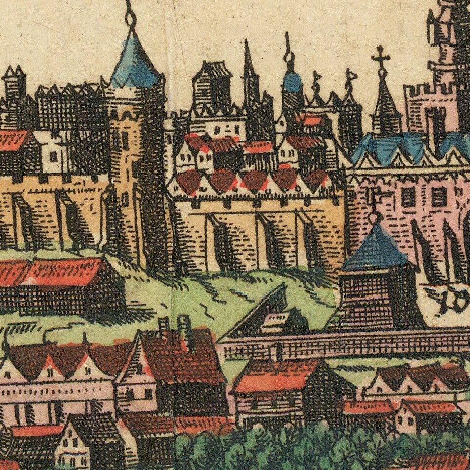 Though it was published in 1721, this view represents the city circa 1617.